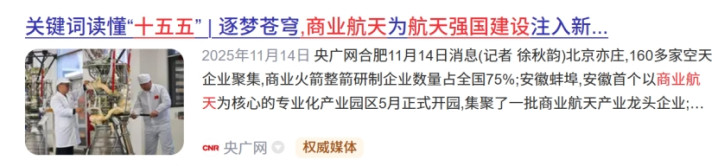 首先,商业航天,首次以建设“航天强国”写入十五五规划,同时还设立商业航天司。